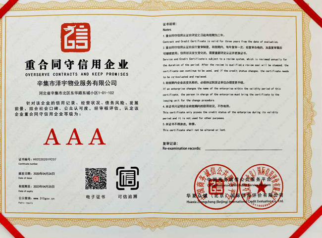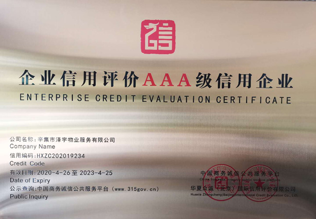 企業(yè)信用評(píng)價(jià)AAA級(jí)信用企業(yè) |